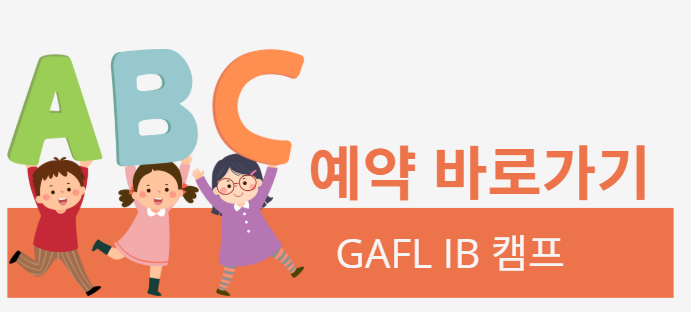 GAFL IB 영어캠프는 영어 몰입과 IB 학습, 기숙형 장기 캠프로 5월 공지 확인 필요.